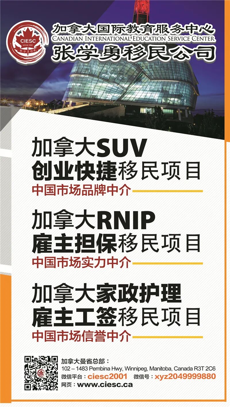 【张学勇移民公司】操作曼省和萨省投资移民项目十多年,成功办理千数投资移民客户案例,专业擅长撰写商业投资项目计划书,有信心有实力助您通过SUV项目移民成功!