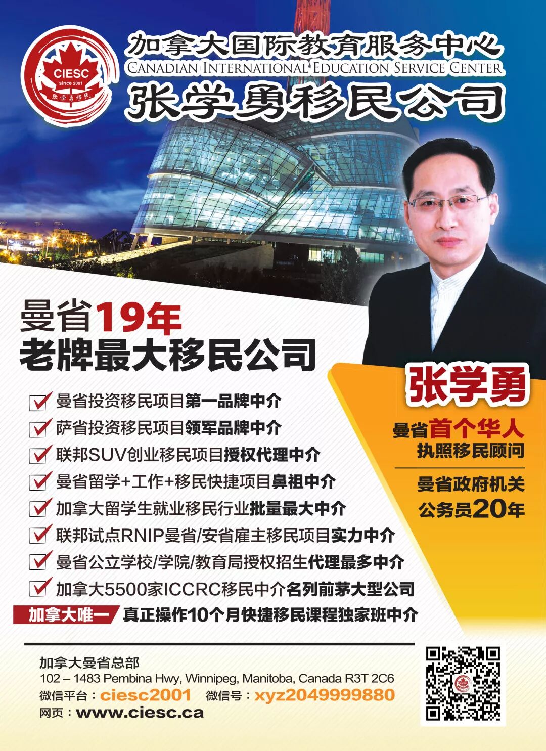 01【张学勇移民公司】领军加拿大移民行业,高瞻远矚 勇于创新。早在2018年1月18日发帖,开创 <食品加工课程>,并于2018年9月7日再次发帖首届办班招生计划。
