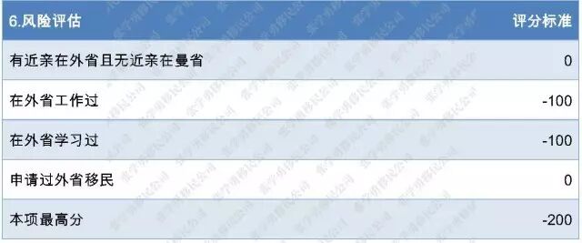 | 外省学生 | 语言 | 年龄 | 工作经验 | 最高学历 | 曼省关联性 | 风险评估 | 总分 |