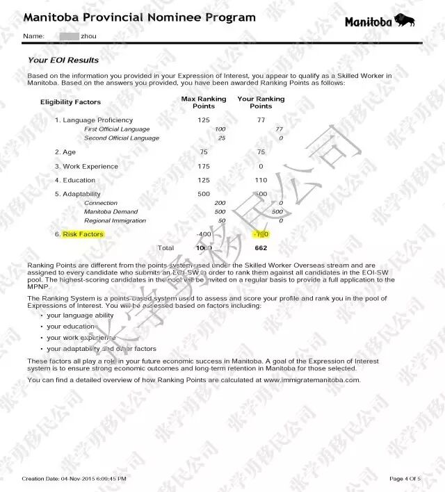 2015年4月30日,曼省移民留学生项目实行EOI 打分系统新政,规定在加拿大曼省以外省份学习或工作过的申请人均要扣除100分。