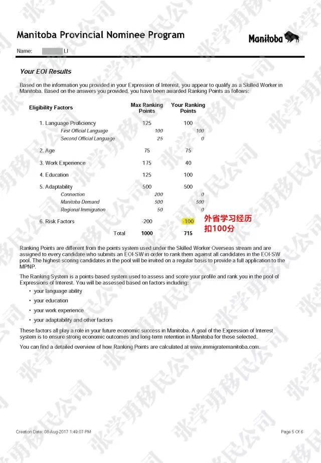 所以,问题来了,外省学校毕业生扣100分,甚至还在外省工作过的扣200分的情况下,还能顺利拿到曼省省提名移民吗???