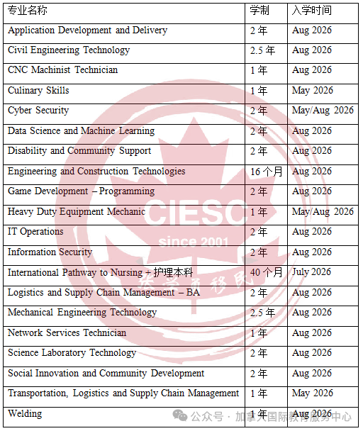 以下专业课程均符合 PGWP(毕业工签)申请条件
