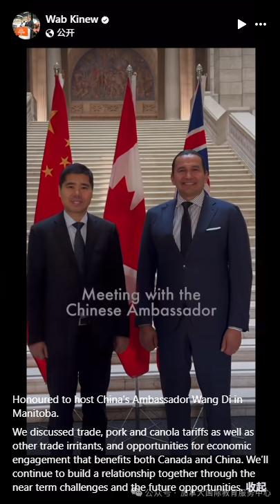 曼省省长的积极友好态度, 促使中国驻多伦多总领事馆和驻加拿大大使馆来访曼省, 进一步推动中加全面合作。